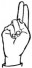 На ћирилици написано САВЕТА РАДИВАНОВИЋ састоји се из 17 слова [?]. Исписано ћириличном једноручном азбуком за глувонеме: